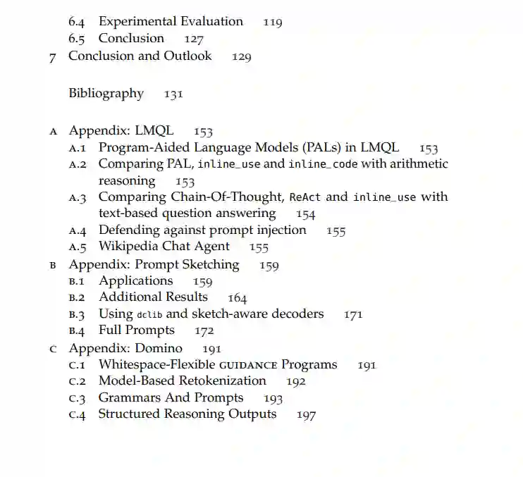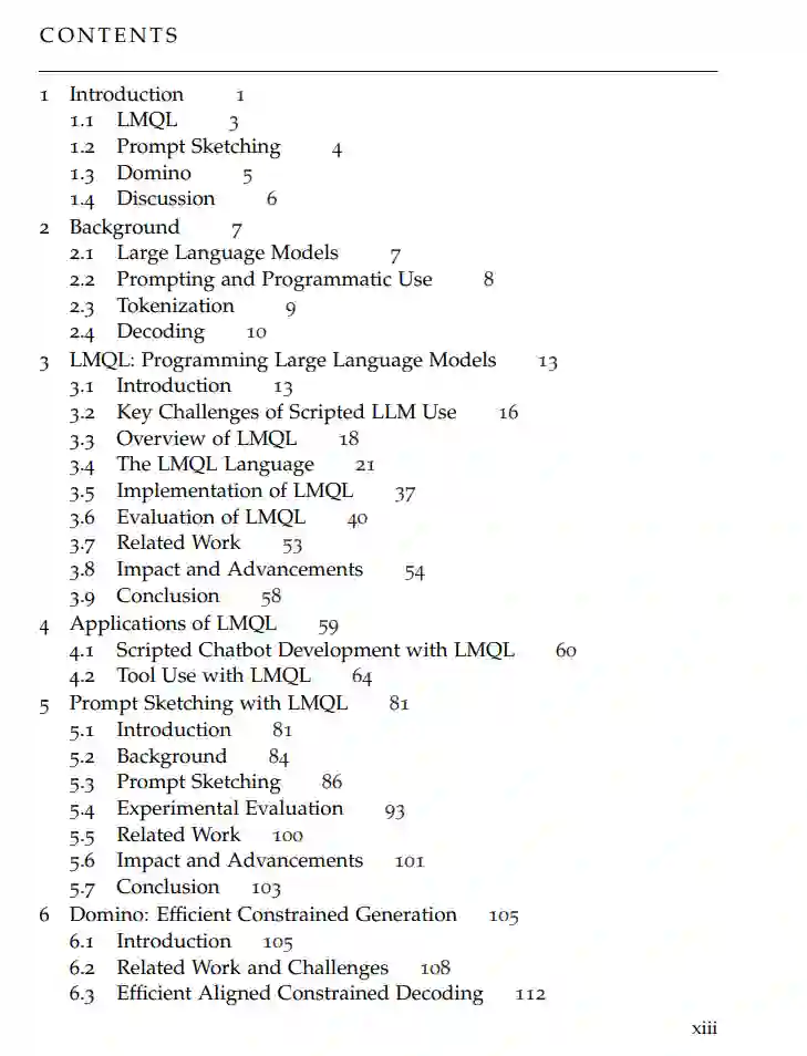 大型语言模型(LLMs)的快速发展正在重塑机器学习领域,实现了前所未有的生成能力。然而,将LLMs与传统软件系统集成时也带来了根本性的挑战,特别是在效率、正确性,以及需要构建结构化编程抽象以协调其概率性特征与传统确定性软件工程系统和实践之间的矛盾。本文将这一趋势视为一种新兴范式,旨在推动我们称之为语言模型编程(Language Model Programming, LMP)的研究进展,通过引入新的程序抽象和算法,实现更高效、更可靠、更可控的LLM编程方式。 为此,本文提出了三个核心贡献:首先,引入了一种新的编程语言和运行时系统——语言模型查询语言(LMQL),用于高效地构造提示词并约束与LLM的程序交互;其次,提出了提示草图(Prompt Sketching),这是一种以模板为中心的解码方法,支持结构化、多阶段的LLM交互,同时确保更准确、更有引导性的生成过程;最后,介绍了一种高效的、基于语法的推测性文本生成算法——Domino,该算法旨在满足高吞吐量推理需求,同时延续了LMQL和更广义LMP范式下对生成的可靠性和控制性要求。 这些工具和算法显著提升了与LLM进行编程的效率、可靠性与可控性,为构建更先进、更个性化、更自主、且更高效的软件系统奠定了基础——以LLM为核心。为实现这一目标,本文不仅借鉴了传统编程语言领域的研究成果,也融合了LLM的最新进展,以及编译器构建、语法解析器、声明式与命令式编程、自然语言处理中的解码算法等相关技术。