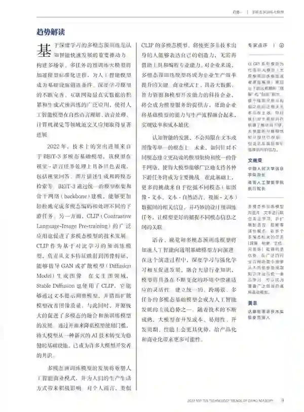 基于多模态的预训练大模型将实现图文音统一知识表示,成为人工智能基础设施。