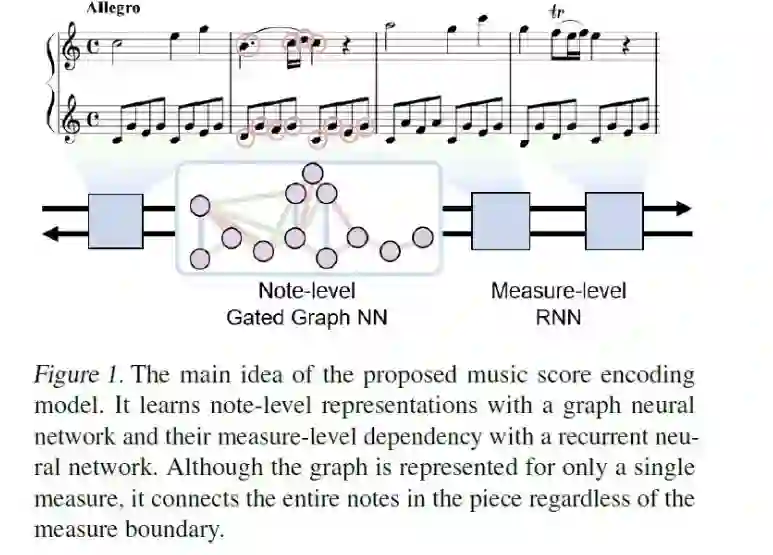 摘要:乐谱通常被处理为一维序列数据。与文本文档中的单词不同,乐谱中的音符可以由复调性质同时演奏,并且每个音符都有自己的持续时间。在本文中,我们使用图神经网络表示乐谱的独特形式,并将其应用于从乐谱中渲染表现力的钢琴演奏。具体地,我们设计了使用note-level门控图神经网络和采用迭代反馈方法的双向LSTM测量级层次注意网络的模型。此外,为了对给定输入分数的不同性能风格建模,我们使用了一个变分自编码器。听力测试结果表明,与baseline模型和层次注意网络模型相比,我们提出的模型生成了更多的类人性能,而层次注意网络模型将音乐得分处理为类词序列。