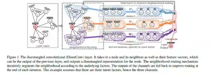 摘要:真实世界图形的形成通常来自于许多潜在因素之间高度复杂的交互作用。现有的基于图结构数据的深度学习方法忽略了潜在因素的纠缠,使得学习表示不鲁棒,难以解释。然而,在图神经网络的研究中,如何将潜在因素分解出来的学习表示方法面临着巨大的挑战,并且在很大程度上还没有得到探索。本文引入解纠缠(Disentangled)图卷积网络(DisenGCN)来学习disentangled节点表示。特别地,我们提出了一种新的邻域路由机制,它能够动态地识别可能导致节点与其相邻节点之间产生边的潜在因素,并相应地将相邻节点分配到一个提取和卷积特定于该因素的特性的信道。从理论上证明了该路由机制的收敛性。实验结果表明,我们提出的模型可以获得显著的性能提升,特别是当数据表明存在许多纠缠因素时。