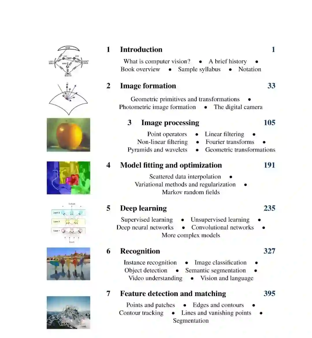 深度神经网络现在在许多视觉算法中扮演着重要的角色,这本书的新版本在早期就将其作为基础技术介绍,并在后续章节中广泛使用。