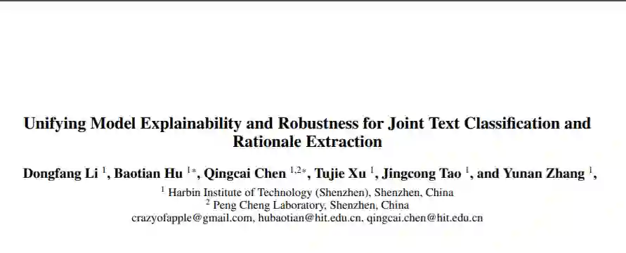 最近的研究表明,可解释性和鲁棒性是可信和可靠文本分类的两个关键因素。然而,以往的研究通常涉及两个方面之一:i)如何在有利于预测的同时提取出可解释性的准确理论;如何使预测模型对不同类型的对抗攻击具有鲁棒性。从直观上看,一个产生有用解释的模型应该在对抗攻击时更加鲁棒,因为我们不能相信输出解释但在小扰动下改变预测的模型。为此,我们提出了一个联合分类和基本原理提取模型AT-BMC。它包括两种关键机制: 混合对抗训练(AT)利用离散空间和嵌入空间中的各种扰动来提高模型的鲁棒性,边界匹配约束(BMC)利用边界信息的引导来更精确地定位理论。在基准数据集上的性能表明,所提出的AT-BMC在分类和基本原理提取方面都大大优于基线。鲁棒性分析表明,所提出的AT-BMC有效地降低了攻击成功率,达到69%。实证结果表明,鲁棒的模型与较好的解释之间存在联系。