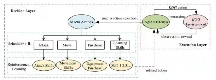 图 6.12. MOBA 智能体分层架构。分层架构由宏观战略和微观操作组成。