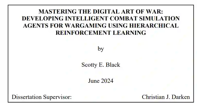 在当今快速发展的军事领域,推进人工智能(AI)以支持兵棋推演变得至关重要。尽管强化学习(RL)在开发智能体方面大有可为,但传统的 RL 在处理作战模拟固有的复杂性方面仍面临局限。本文提出了一种综合方法,包括有针对性的观测抽象、多模型集成、混合人工智能框架和总体分层强化学习(HRL)框架。使用片断线性空间衰减的局部观测抽象简化了强化学习问题,提高了计算效率,并显示出优于传统全局观测方法的功效。多模型框架结合了各种人工智能方法,在优化性能的同时,还能使用多样化、专业化的个体行为模型。混合人工智能框架将 RL 与脚本智能体协同作用,利用 RL 进行高级决策,利用脚本智能体执行低级任务,从而提高了适应性、可靠性和性能。HRL 架构和训练框架将复杂问题分解为易于管理的子问题,与军事决策结构保持一致。虽然最初的测试并未显示出性能的提高,但获得了改进未来迭代的见解。这项研究强调了人工智能在兵棋推演中的革命性潜力,并强调了在这一领域继续开展研究的必要性。