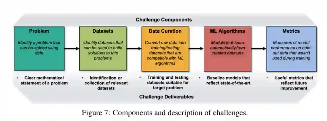 参与用户社区: 本文中概述的每一个挑战都有不同的科学社区。重要的是,通过研讨会和技术交流,让这个社区尽早参与到挑战问题的发展中来。这确保了有趣的问题、相关的度量标准和准确反映领域最先进技术的基线实现。