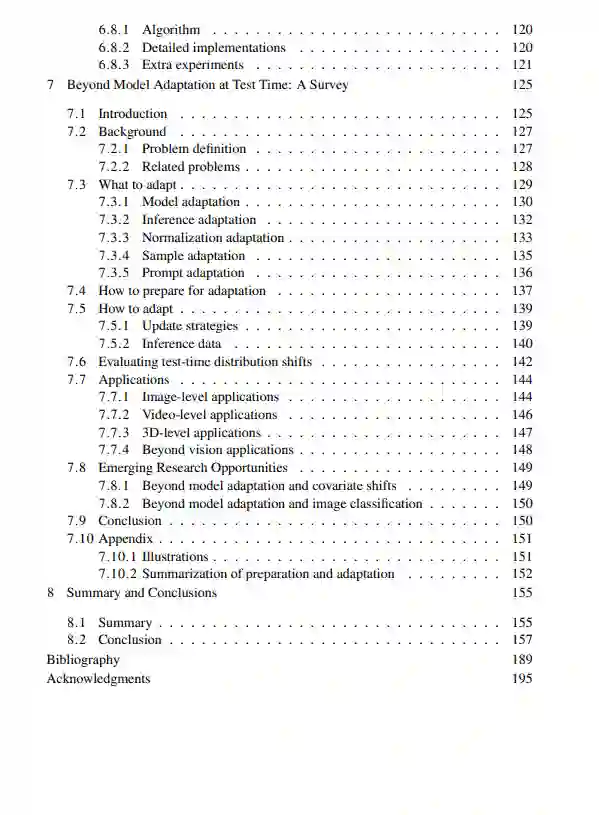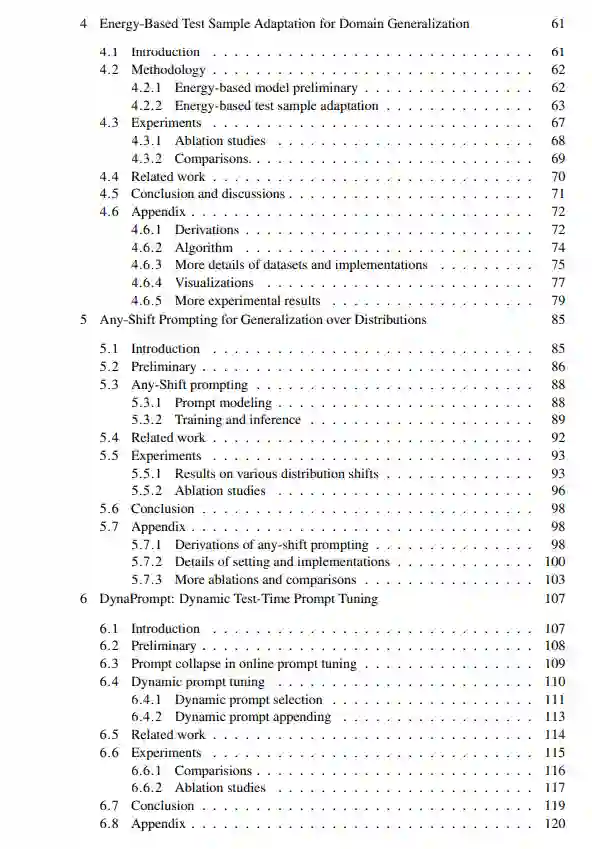 每一章均提出了创新方法,详细介绍了方法论与实验结果,展示了在测试阶段提升泛化能力的全面路径。 最后,论文进一步探讨了测试时泛化的历史与未来,并系统回顾了测试时自适应(Test-Time Adaptation, TTA)领域的研究进展,为测试时泛化的发展提供了全面总结与未来展望。