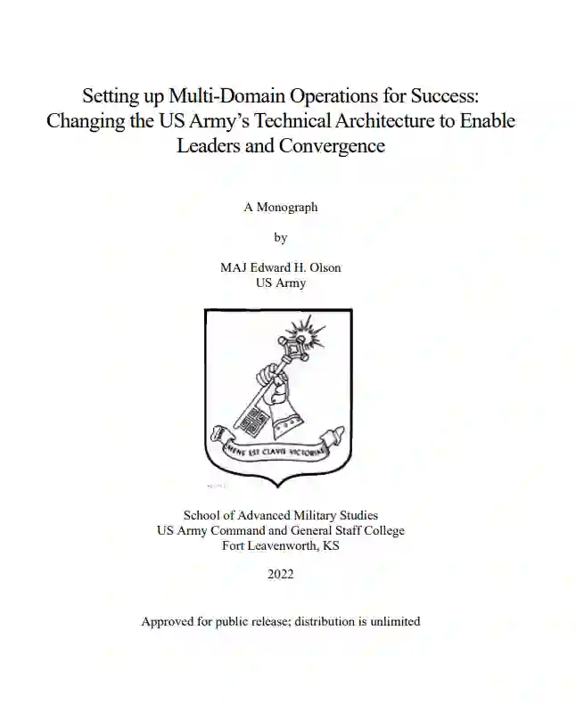 这部专著探讨了支持多域作战和融合概念的技术架构。在回顾了陆军如何形成其目前的信息架构之后,它利用赫尔穆特-冯-莫特克和约翰-博伊德的实践和理论,对沃尔玛、多米诺和亚马逊网站进行了商业案例研究,以了解它们如何在全球化市场日益复杂的竞争中茁壮成长。实施从这些商业中吸取的教训,可以使美国军队通过改变其数字架构在竞争中取得优势。转变为算法增强的、基于网络的架构,可以将领导者的精力从强调处理堆积如山的数据的机械性细节中释放出来。这使他们能够专注于适应性和作战或战术方法,增强在现代世界不断发展的复杂性中成功竞争所需的敏捷性。