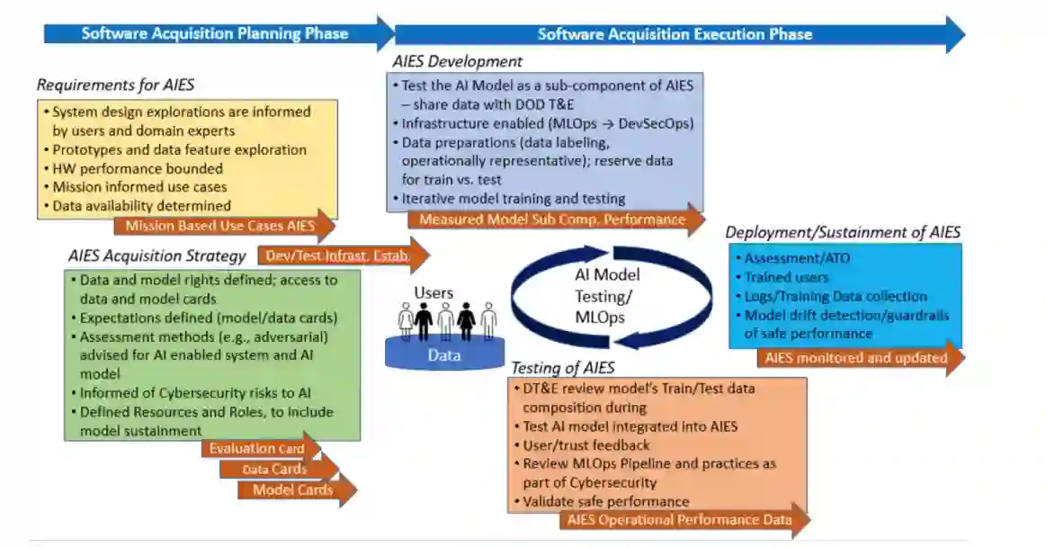 确保并了解系统工程生命周期早期用于构建 AIES 的流程,为后期测试和开发过程中的测试与评估提供信息。AIES 需要持续监测和分析,以确保在系统的整个生命周期,特别是在部署和维护期间,满足任务需求。