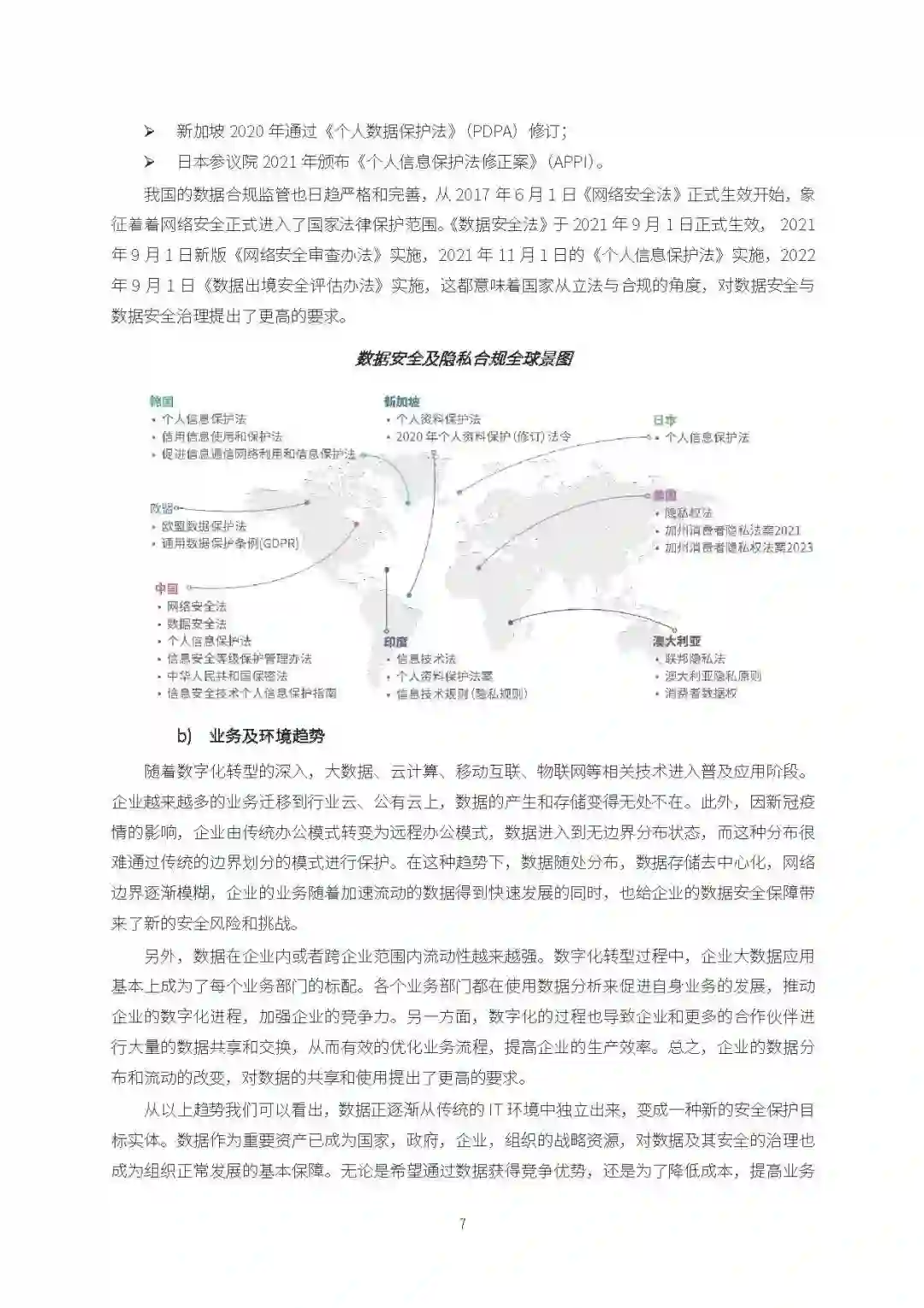 随着数据应用场景日渐多样化,数据成了国家、企业和个人的重要资产。 >国家层面:数据资源推动全球化贸易,数据在全球跨境流动,带来的安全风险不仅影响商 业经济,也影响国家安全及竞争力,加强数据安全治理已经成为维护国家安全的战略需要; > 企业层面:数据是企业的重要资产源,数据安全治理能力与企业的竞争力成正比; > 个人层面:个人信息的采集、使用及共享,既带来了便利,也弱化了个人信息的自决权, 降低了隐私滥用的门槛,因此数据安全意识将成为个人数据保护的基本要求。 有别于传统网络安全,数据安全需清晰理解其根本,包括数据治理、数据资产管理、数据安全 理治等,才能从上而下建立健全数据安全制度、数据资产体系、数据分类分级准则、数据全生命周 期保护规范,再结合不同的数据安全技术能力,提升数据安全水平。