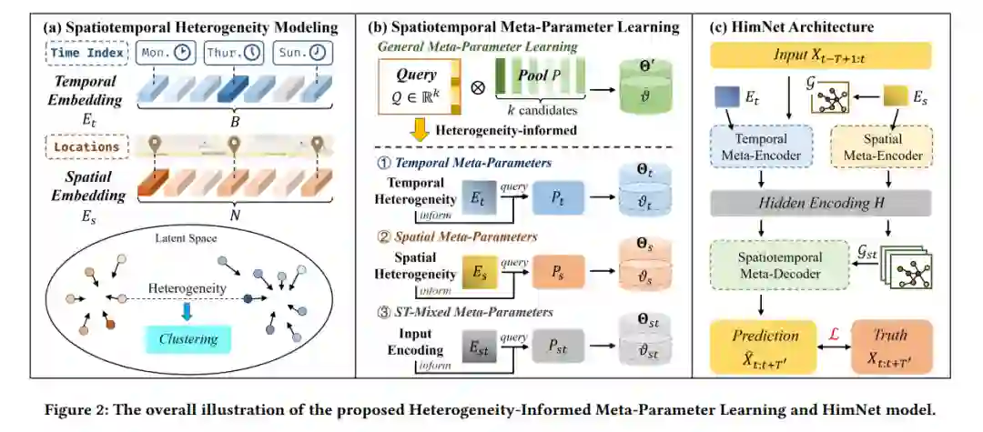 时空时间序列预测在许多现实世界应用中起着关键作用。尽管在这一领域已经取得了显著进展,但完全捕捉和利用时空异质性仍然是一个基本挑战。因此,我们提出了一种新颖的异质性知情的元参数学习方案。具体而言,我们的方法通过学习空间和时间嵌入隐式地捕捉时空异质性,这可以看作是一个聚类过程。然后,提出了一种新的时空元参数学习范式,从元参数池中学习时空特定的参数,这些参数是由捕捉到的异质性信息提供的。 基于这些想法,我们开发了一种用于时空时间序列预测的异质性知情时空元网络(HimNet)。在五个广泛使用的基准数据集上进行了广泛的实验,结果表明我们的方法达到了最先进的性能,同时表现出优越的可解释性。我们的代码可在 https://github.com/XDZhelheim/HimNet 获取。