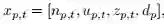 离散时间步骤t的状态向量可以表示为三个向量的组合。,其中np,t是文本笔记的表示向量,up,t表示数值向量,zp,t与医疗事件的编码ID有关,dp对应于静态的病人信息,如人口统计学。为了简化符号,我们把时间戳t的病人向量称为