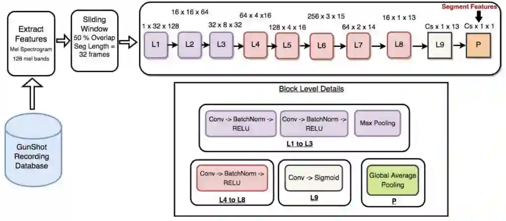 该网络以音频特征(如梅尔频谱)为输入,包含共享卷积层及后续独立分支——分别执行枪声检测与枪支类型分类任务。[15]