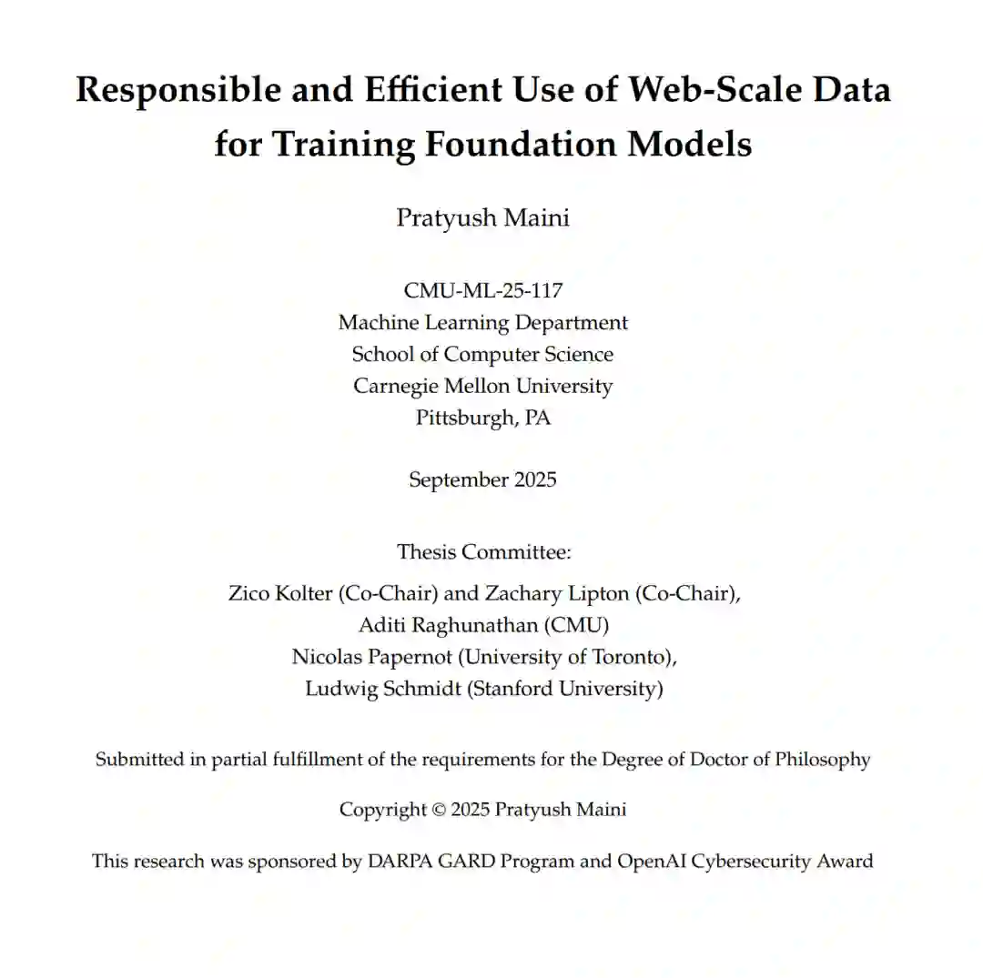 本论文通过围绕两大主题的创新贡献解决了上述挑战:(1) 理解并缓解基础模型中的记忆现象;(2) 大规模环境下数据质量与训练效率的提升。在主题 (1) 中,我们开发了将模型输出归因至训练数据的技术,检测并定位模型参数中存储的记忆知识,并设计了用于卸载内容以防止隐私泄露的框架。在主题 (2) 中,我们引入了表征及过滤 Web 尺度数据的方法以最大化其效用,确立了指导算力约束下训练集策展的缩放定律,并利用合成数据生成技术显著加速模型预训练。通过结合这些研究成果,本论文提出了一条构建基础模型的新路径,使其能够既“负责任”地从 Web 尺度数据中学习——保障隐私与数据权利,又“高效”地从每一单位数据与算力中提取最大性能。