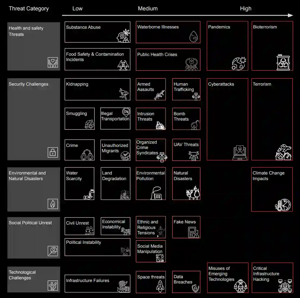 在全球化、技术进步、社会政治利益、不断发展的健康和安全问题以及人口结构变化等各种力量的交织推动下,公共安全领域处于不断变化之中。与过去不同的是,今天的威胁超越国界,表现形式多种多样且不断变化。从无处不在的破坏重要基础设施的网络攻击威胁,到跨国有组织犯罪网络日益增长的影响力,当代的挑战要求我们采取灵活机动的应对措施。本节深入探讨了公共安全面临的多方面威胁,分析了公共安全实体面临的当代挑战的动态变化,并强调了对城市资源的影响。