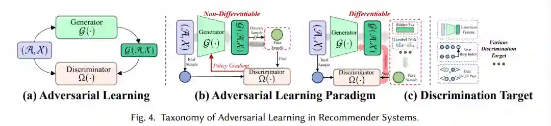 在推荐系统中对抗学习(AL)的背景下,鉴别器在区分生成的假样本和真实样本中扮演着关键角色。类似于生成学习,我们提出了我们的分类法,该分类法从学习范式和鉴别目标的角度包含了推荐系统中的AL 在本节中,我们旨在深入探讨推荐系统中自监督学习领域的几个开放问题和潜在的未来发展方向。通过探索和分析这些挑战和机会,我们希望激发和鼓励在这一迅速发展的研究领域中进一步的研究、开发和创新。