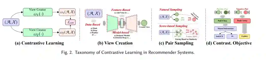 对比学习(CL)的基本原则涉及最大化不同视图之间的一致性。因此,我们提出了一个以视角为中心的分类法,其中包含了在应用对比学习时需要考虑的三个关键组成部分:创建视图、配对视图以最大化一致性,以及优化一致性。