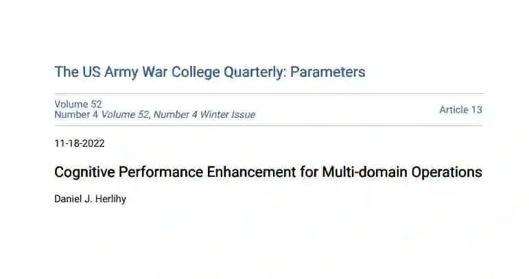 认知能力是支持所有士兵表现的关键变量:身体、精神和情感。美国陆军条令认识到认知优势的重要性,或获得对敌人的智力优势。它甚至在最近的几个出版物中占据了突出位置,包括2019年陆军现代化战略(AMS)和美国陆军多域作战(MDO)2028年概念。 尽管认知科学取得了进展,并且认识到认知超配在多域作战中的重要性,然而,美国陆军还没有完全接受认知能力优化的概念。在过去的十年中,美国国家卫生研究院在大脑研究方面的投资超过535亿美元,但士兵和领导人在 "永远在线 "的多任务和连接文化中进行训练和操作,这种习惯最终会降低认知性能。 无论是在驻地还是在部署时,领导人都试图过滤几十条信息流,并在睡眠不足和对认知能力优化原则理解有限的情况下做出快速决策。