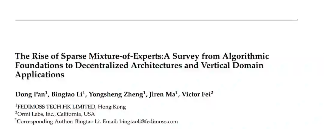 摘要: 稀疏混合专家模型 (MoE) 架构已演进为一种强大的方法,能够在保持计算成本基本不变的情况下,显著提升深度学习模型的参数规模。作为大语言模型 (LLM) 的一个重要分支,MoE 模型根据路由网络仅激活专家的子集。这种稀疏条件计算机制大幅提高了计算效率,为实现更高的可扩展性和成本效益铺平了道路。该技术不仅增强了自然语言处理、计算机视觉和多模态等多个水平领域的下游应用,还在医疗诊断、自动驾驶、金融分析和商业智能等垂直领域展现出广泛的适用性。尽管 MoE 模型在各领域的关注度和应用日益增加,但目前仍缺乏对其在诸多重要领域最新进展的系统性探究。现有的 MoE 综述存在覆盖范围不足或对关键领域探索不够深入等局限。 本综述旨在填补这些空白。首先,我们审视了 MoE 的基础原理,深入探讨了其核心组件——路由网络与专家网络。随后,我们将视野从中心化范式扩展至去中心化范式。去中心化范式释放了去中心化基础设施中巨大的未开发潜力,使 MoE 开发的“民主化”成为可能,从而惠及更广泛的社区,并提供更强的可扩展性与成本效益。此外,我们重点探讨了其在垂直领域的应用。最后,我们识别了当前面临的关键挑战及具有前景的未来研究方向。据我们所知,本综述是目前 MoE 领域内最详尽的综述。我们希望本文能为研究人员和从业者提供宝贵的资源,帮助其洞察并跟进该领域的最新进展。 关键词: 混合专家模型 (MoE)、去中心化学习、大语言模型 (LLM)、Transformer 架构 作为您的学术翻译专家,我将针对该引言部分进行深度翻译。这一部分确立了论文的研究背景、动机以及核心贡献,语言风格需兼具叙述的流畅性与理论的严谨性。