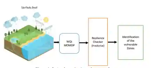 为了确定脆弱地区并在这些地区采取适当的行动,需要大量的人力和费用。这些行动涉及综合管理行动,涉及与工农业污水使用管理、人力资源(HR)管理的复杂性、固定资产和反应性或计划性维护有关的各个部门和组织(Barbosa, Alam and Mushtaq, 2016)。因此,重要的是实现流程自动化,以尽可能快地检测出脆弱区域。因此,基于人工智能的最佳决策支持系统可以减少管理这种巨大任务的成本,并可以产生社会经济影响,这可能有助于可持续发展。图1.2显示了测试案例2的鸟瞰图,其中智能体能够根据水质恢复力预测脆弱区域。