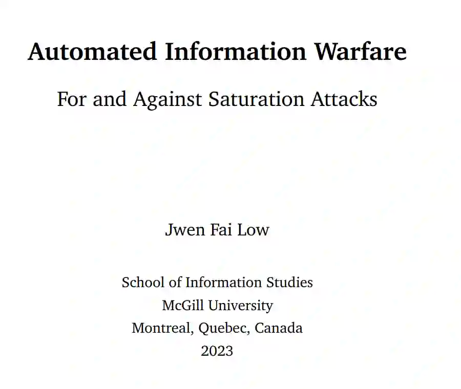 信息社会时刻面临着信息战的威胁,信息战可以针对军事和民用目标实施。事实证明,破坏电子硬件安全成功地摧毁了电力网络、核研究项目和证券交易所。然而,针对作为社会技术系统重要生物组成部分的人类,也能取得类似的结果。我们所说的影响/信息作战(info ops),信息系统的用户既是最容易受到攻击的点,也是攻击的目标。虽然信息作战是信息战的一个子领域,但它的范围很广,包括一系列针对人类认知的方法。本论文的重点是信息饱和攻击,即用大量信息压倒目标的战术。