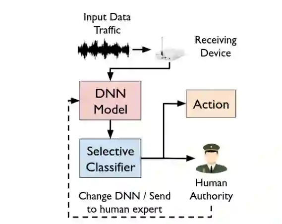 深度神经网络的普遍存在使得人工智能成为战术通信与网络系统不可或缺的组成部分。然而,现代深度神经网络的过度自信在关键任务应用中构成了显著风险。选择性分类是一个有前景的范式,它通过使深度神经网络能够避免给出不可靠的预测来缓解此问题。尽管在计算机视觉领域有大量关于选择性分类的工作,但这些方法在战术通信场景中的效用尚未得到评估。本研究评估了战术领域内的最先进选择性分类方法,重点聚焦于它们分别使用RadioML和ACI IoT数据集时,在自动调制分类和网络入侵检测系统任务中的适用性。关键发现表明,对于自动调制分类任务,选择性分类在降低20%覆盖率的情况下可将风险降低55%;对于网络入侵检测系统任务,在覆盖率损失最小的情况下,风险可降至接近零。此外,分析了选择性分类在数据分布变化下的性能,揭示了传统方法在处理协变量偏移和语义偏移方面的局限性。最后,探讨了提升选择性分类性能的训练策略。