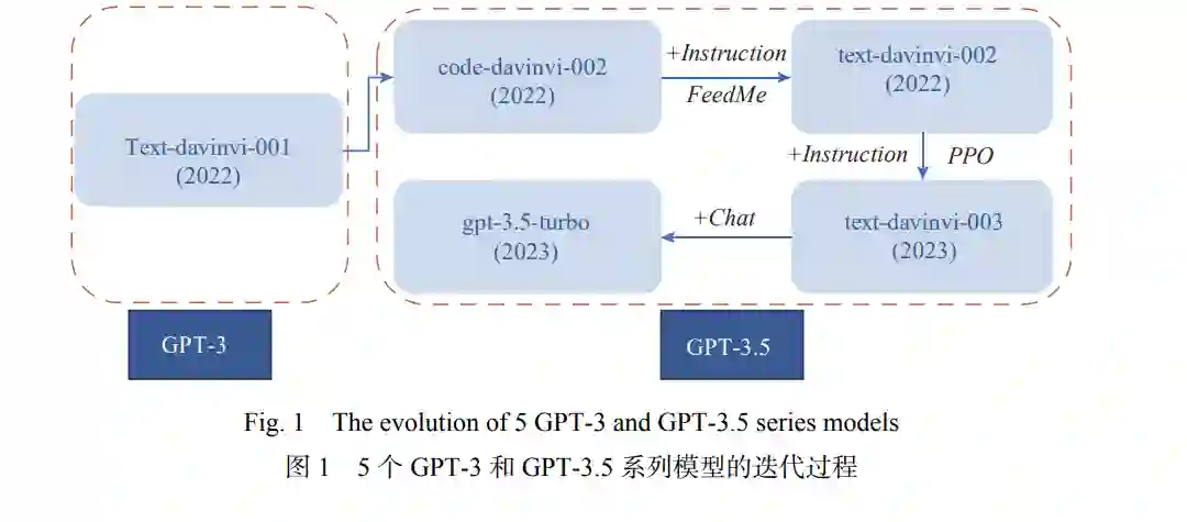 鲁棒性衡量了模型在面对异常情况(如噪音、扰动或故意攻击)时的稳定性,这种能力在现实场景,尤其是在自动驾驶和医学诊断等安全场景下对于大模型至关重要. 鉴于此,现有工作对大模型的鲁棒性展开了探究:Wang等人[10]从对抗性和分布外(out of distribution,OOD)的角度出发,使用现有的AdvGLUE[11]和ANLI[12]对抗基准评估ChatGPT等大模型的对抗鲁棒性,使用DDXPlus[13]医学诊断数据集等评估分布外鲁棒性;Zhu等人[14]则从提示的角度出发,提出了基于对抗性提示的鲁棒性评测基准,并对大模型在对抗提示方面的鲁棒性进行了分析. 然而,已有的研究主要使用对抗攻击策略,这对于大规模评估来说需要消耗大量的算力和时间;并且对抗样本生成的目标是通过对特定模型或数据集的原始输入进行微小的扰动,以误导模型的分类或生成结果,但这些扰动并不总是代表真实世界中的威胁和攻击方式. 此外,现有研究大多针对ChatGPT及同时期的其他大模型,对GPT系列模型迭代过程中性能和鲁棒性的变化关注较少. 鉴于此,本文选择了图1所示的5个GPT-3和GPT-3.5系列模型作为大模型的代表,通过全面的实验分析其性能和鲁棒性,以解决以下问题: