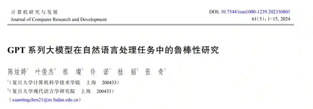 大规模语言模型,如FLAN[1]、GPT-3[2]、Llama[3]和PaLM2[4]等,在对话、理解和推理方面展示了惊人的能力[5]. 在不修改模型参数的情况下,大模型可以仅通过输入合适的提示来执行各种任务. 其中,GPT系列模型因其出色的能力备受关注. 为定量评估和探究大模型的能力,已有的工作集中于评估大模型在常识和逻辑推理[6]、多语言和多模态[7]、心智理论[8]和数学[9]等方面的能力. 尽管这些工作在基准测试集上取得了很好的效果,但大模型是否具备良好的鲁棒性仍然需要进一步研究.