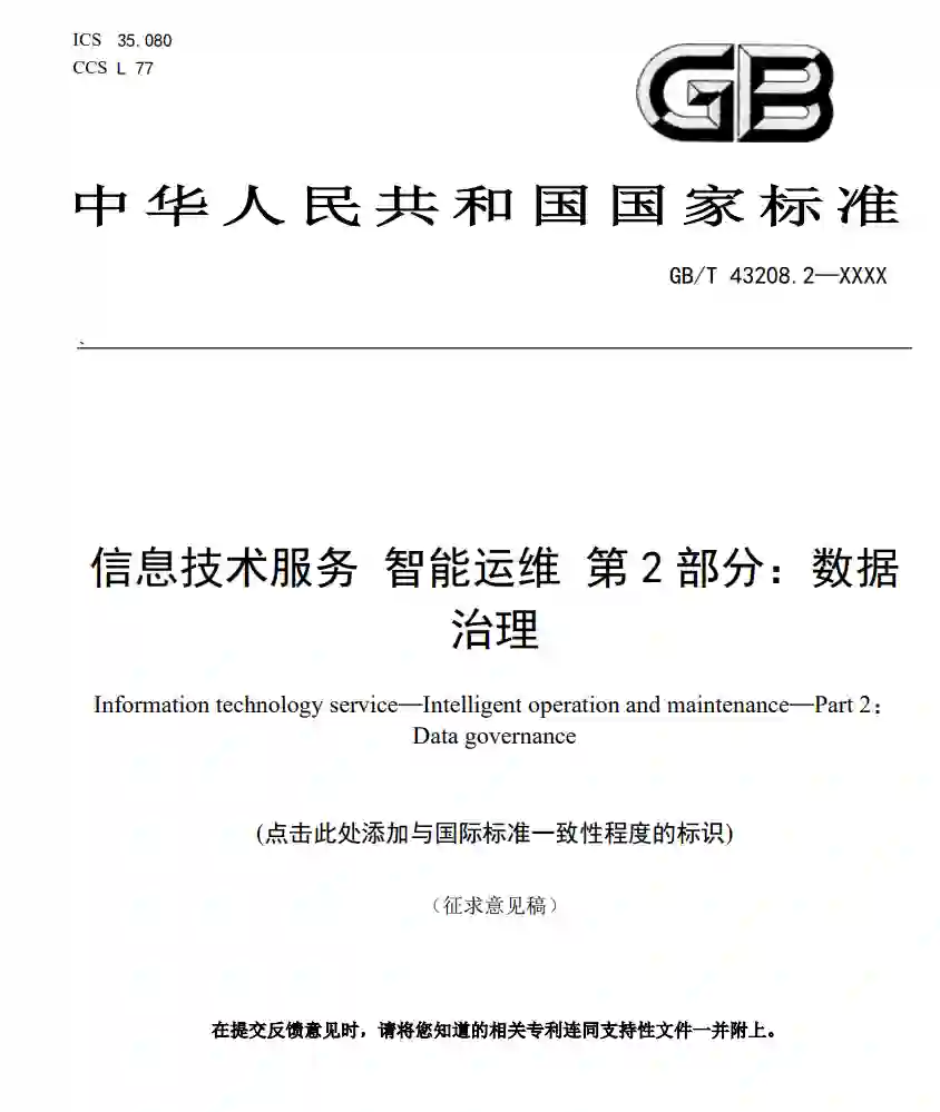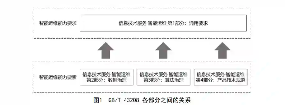 GB/T 43208拟由4个部分构成。 —— 第 1 部分:通用要求。目的是为智能运维组织提供智能运维框架,指导组织从组织治理、智 能运维场景实现和能力域三个方面开展智能运维建设,持续提升智能运维水平,实现运维目 标。 —— 第 2 部分:数据治理。目的是为智能运维组织提供运维数据治理框架,指导组织对能力域中 的数据要素进行治理,为智能运维建设提供高质量的运维数据,有效地支撑智能运维场景的 实现。 —— 第 3 部分:算法治理。目的是为智能运维组织提供运维算法治理框架,指导组织对能力域中 的算法要素进行治理,为智能运维建设提供安全、可靠、有效的运维算法,挖掘运维数据的 价值,赋能运维场景的实现。 —— 第 4 部分:产品技术规范。目的是为智能运维组织提供运维技术框架,为智能运维建设提供 技术应用的原则、方法和要求,支撑智能运维场景的实现。 本文件继承和借鉴了传统业务数据治理的理论方法,针对运维数据的特点,明确了运维数据的治 权和治理框架,形成运维数据治理体系,提供高质量、全覆盖的运维数据支撑智能运维场景更好的落 地实施,有效解决运维数据质量参差不齐、针对性标准缺位等运维数据核心问题。