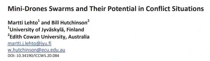 无人驾驶飞行器(UAV)俗称无人机,目前被广泛用于边境监控、空中侦察、交通管制和武装冲突中的军事干预等行动。尽管人的因素在编程和控制方面仍起着至关重要的作用,但这些飞行器有望成为可靠、自动、有时甚至自主的机器。无人机在诞生之初,结构复杂,体积庞大,只属于技术先进的军事强国的专属俱乐部。它们往往用于对付技术薄弱的军事目标定位。现在,无人机在价格、尺寸和先进性方面的发展使几乎任何人都能购买无人机。这些当代机器通常体积较小,而且随着人工智能(AI)的使用越来越多,其成本和使用范围几乎可以覆盖所有作战人员。因此,有必要重新思考使用它们的战略和战术。这些 "微型无人机 "很少具备 "传统 "无人机的复杂性和能力,但它们确实有能力提供大量资产,并不断增强能力。虽然它们可能不具备大型无人机的起重能力,但它们可以经济地大规模使用,因此可以产生不同但同样有效的结果。本文研究了蜂群及其相关能力,它们不仅能压倒战斗机,还能通过遍布蜂群的额外传感器带来额外功能。因此,复杂的人工智能为无人机群提供了各种类型的功能:例如,假人/曳光无人机、动能和非动能攻击无人机、监视无人机,以及可配备无线接入点并部署为特设飞行网络的无人机。本文还探讨了无人机/无人驾驶飞机的类别和自主性,以及如何利用自主性和蜂群智能(SI)为各种作战概念创造效率。