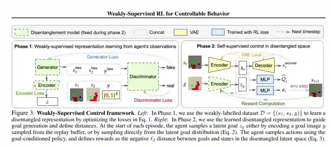 强化学习(RL)是学习采取行动解决任务的强大框架。然而,在许多情况下,一个代理必须将所有可能的任务的大得令人难以置信的空间缩小到当前要求它解决的单个任务。我们是否可以将任务的空间限制在语义上有意义的范围内呢?在这项工作中,我们介绍了一个使用弱监督的框架来自动地把这个语义上有意义的子空间的任务从巨大的无意义的“杂碎”任务中分离出来。我们证明了这个学习得的子空间能够进行有效的探索,并提供了捕获状态之间距离的表示。对于各种具有挑战性的、基于视觉的连续控制问题,我们的方法带来了大量的性能收益,特别是随着环境的复杂性的增长。