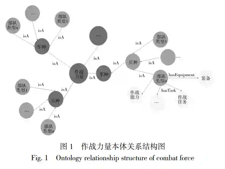 随着战争复杂性的不断加剧, 模拟仿真系统已 被广泛应用于作战理论创新、作战方案设计优化、 作战能力评估, 以及各类演习演训和装备采办活动 中[1-2] . 作为初始化并驱动模拟仿真系统运行的基础 支撑, 仿真想定的质量直接影响系统运行效率和仿 真结果的真实可信[3] . 由于仿真系统存在仿真层级(平 台级、聚合级)、仿真模式(人在回路、人不在回路)、 仿真模型等差异, 对仿真想定的需求、可驱动运行的 想定脚本的要求等并不完全一致. 因此, 仿真想定的 开发, 普遍存在专业性强、定制要求高、迁移性差的 问题. 针对这一系列问题, 提出了一种基于知识图谱 的仿真想定智能生成方法. 该方法通过多源仿真模 型的实体链接, 构建支撑仿真想定生成的知识图谱, 提升仿真系统模型的重用性[4];研究适用于仿真模型 匹配的实体对齐算法, 提高数据匹配度[5] . 方法中待 解决的核心关键技术包括:1)仿真想定的形式化描 述. 与军事想定不同, 仿真想定用以驱动仿真系统运 行, 应表示为结构化、形式化的想定数据, 并确保其 能被仿真系统识别、理解和使用;2)知识图谱的构 建. 为支撑仿真想定的映射匹配, 知识图谱构建过程 中, 要按照仿真想定的要素需求, 搭建知识图谱框架, 并有效链接主流仿真系统模型实体;3)实体对齐算 法的选择. 在不同的仿真推演系统中, 相同实体可能 对应不同仿真模型, 或拥有不同模型属性, 需要选择 有效的实体对齐算法, 提高仿真想定与知识图谱的 匹配速度和精度.