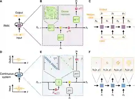 摘要: 在这篇论文中,我们识别了基于波动的物理现象(如声学和光学)的动力学与递归神经网络(RNN)中的计算之间的映射。RNNs是最重要的机器学习模型之一,被广泛应用于自然语言处理(11)和时间序列预测(12-14)等任务。我们表明,基于波的物理系统可以被训练成RNN,因此,可以在其本地域中被动地处理信号和信息,而无需进行模数转换,这将导致速度的大幅提高和功耗的降低。在这个框架中,不是实现有意将信号路由回输入端的电路,而是在物理本身的时间动力学中自然地出现递归关系,并且当波在空间传播时,信息处理的内存和容量由波提供。
