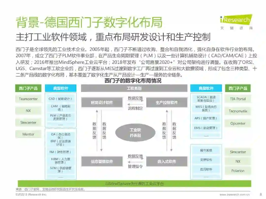 制造业数字化转型所具备的条件: 政策端:政策方向以补短板、育龙头、促新技术与制造业融合创新为主调,引导制造业向服务型制造业转型。 技术端:AI、5G等相关技术的基础建设逐步推进,并且逐步在工业场景中推行应用。 资本端:资本市场整体下行的情况下,软件相关企业获投次数与金额逆势上涨,其中以MES、AI检测等为主。 供需端:对于供给端而言,软硬件产品已经逐步覆盖生产制造全场景。大部分行业头部厂商逐步向平台型厂商演变,其服务更加综合,覆盖的服务范围更加宽泛。对于需求端而言,大部分制造业企业目前在供应链、生产管理、数据分析等模块上或多或少均已经有较为成功的软件应用实践,即现阶段企业在数字化转型工具方面并非完全的小白,已经具备了一定的数字化转型认知,具备一定的转型基础。 制造业数字化转型的价值与难点: 转型价值:在降低研发试错成本、实现批量个性化生产、促成并满足买方市场、提升企业生产能力等方面价值明显。 转型难点:整体来看,难点可概括为自知难、推进难、落实难三点。针对自知难:1)在庞杂生产参与要素(设备、原材料、人员等)中梳理并明确自身需求难、定位清楚自己的数字化水平难;2)企业如何从诸多同质化的供应商中找到适合的合作对象难。针对推进难:1)制造业企业服务链条长,转型不是一个人或一个部门的事,破除部门墙难;2)转型具有金额高、周期长的特点,供需双方之间就需求变、急求成、急见效等问题会存在诸多拉锯,顺利推进难。针对落实难:1)制造业企业生产相关数据采集、应用难;2)培养并顺利过渡到数字化的工作方式难。 制造业数字化转型的建议与启示: 转型建议:在转型的各个环节、各个参与要素上需自省、外查并行,戒骄戒躁。 供给端:1)对于主打集成商的大厂而言,要针对自身企业基因寻求合适的发展路径,初步来看,对于没有制造业经验的玩家,通用服务>垂直深耕服务用以开源,市场选择先行用以准确切入行业。对于有制造业经验的玩家,则收购/合作代替“从零出发”、占领自己所在行业、持续提升技术投入等是重点。但是,不管哪类企业,都需要重视政府关系。2)对于垂直类玩家而言,经过前期的客户积累、口碑建设后,往往通过生态合作伙伴的建立走向平台化服务,最终可能演变为集成商。 需求端:数字化转型具有持续性,需要企业时刻关注市场变化保证企业数字化方面的先进性。同时,企业要找到适合自己的切入路径,忌盲目追求大而全。目前市场上最常见的路径就是协调式或探索式转型。
