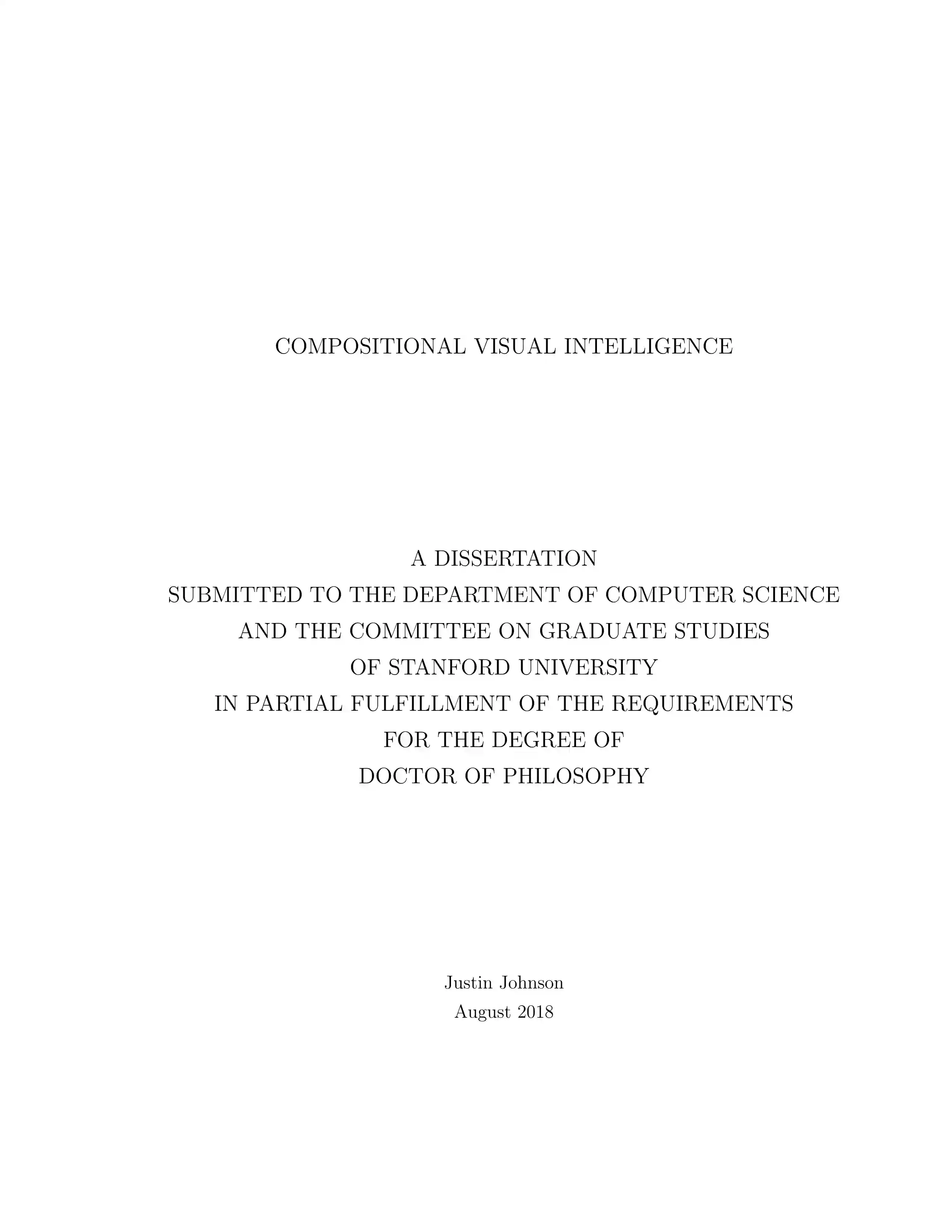 计算机视觉领域在过去几年取得了巨大的进步,这主要归功于卷积神经网络。尽管在传统的计算机视觉任务上取得了成功,但我们的机器系统离人类的一般视觉智能还有很长的路要走。视觉智能的一个重要方面是组合——对整体的理解源于对部分的理解。为了实现组成视觉智能的目标,我们必须探索新的计算机视觉任务,创建新的数据集,开发利用组成性的新模型。在这篇论文中,我将讨论我的工作在三个不同的计算机视觉任务涉及语言,其中包含的合规性帮助我们建立具有更丰富的视觉智能的系统。我将首先讨论图像标题描述:传统系统生成描述图像的简短句子,但是通过将图像分解为区域和描述分解为短语,我们可以生成两种更丰富的描述:密集的标题和段落。其次,我将讨论视觉问答:现有的数据集主要由简短的问题组成;为了研究更复杂的需要复合位置推理的问题,我们引入了一个新的benchark数据集。在此基础上,提出了一种可视化问题交互的显式组成模型,该模型将问题转换为功能程序,并通过组合神经模块来执行这些程序。第三,我将讨论文本到图像生成:现有的系统可以根据文本描述检索或生成单个对象的简单图像,但难以处理更复杂的描述。用对象和关系的构成场景图代替自由形式的自然语言,可以检索和生成包含多个对象的复杂图像。