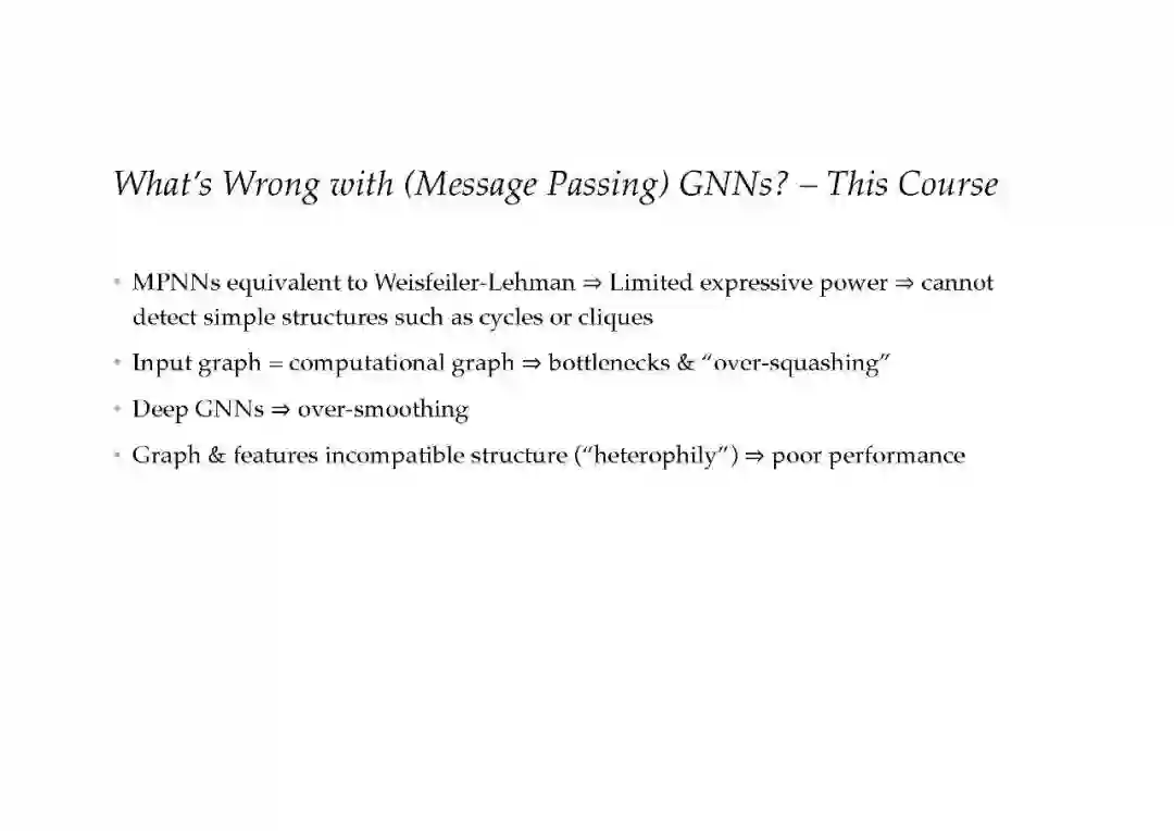 **消息传递仍然是 GNN 的主导范式。**在 2020 年,研究社区意识到了了消息传递 GNN 的不足之处,并寻求这种范式之外的更具表现力的架构。2021 年,很明显,消息传递仍然占据主导地位,因为有的研究工作表明,将 GNN 应用于子图可以获得更好的表达能力。