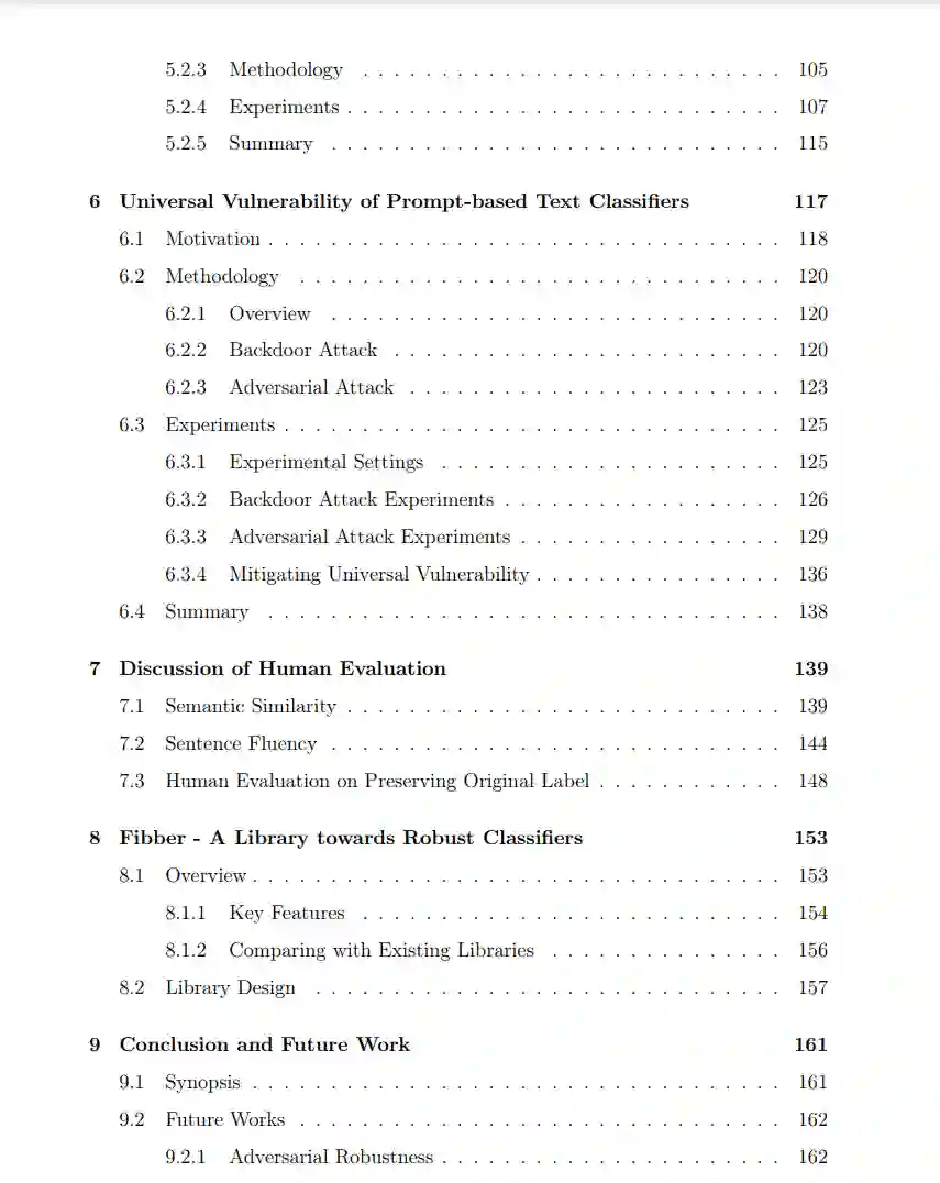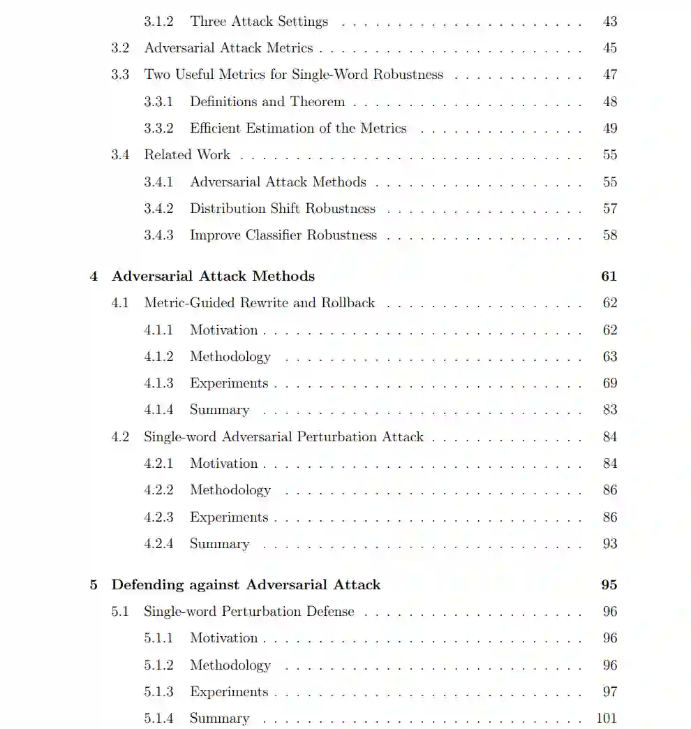文本分类作为自然语言处理的基本任务已经被研究了几十年。部署分类器能实现更高效的信息处理,这对于各种应用(包括决策制定)都非常有用。然而,分类器也存在挑战性和长期的问题。随着它们的使用增加,人们对其鲁棒性、公平性、准确性和其他指标的期望也随之增加。在本论文中,我们的目标是开发更易于部署且鲁棒性更强的文本分类器,重点关注通过开发攻击和防御方法来提高分类器对抗对手攻击的鲁棒性。对手攻击对文本分类器来说是一个安全隐患,因为它们涉及恶意用户微调一个句子以操纵分类器的输出的情况。为了设计更有效的攻击方法,我们首先关注提高对抗句子质量 - 与现有的优先考虑误分类并忽略句子相似性和流畅性的方法不同,我们将这三个标准综合为一个综合评分。然后,我们概述了一个重写和回滚框架,用于优化这个分数并在提高相似性和流畅性的同时实现最先进的攻击成功率。其次,我们关注计算需求。现有方法通常使用组合搜索来查找更改多个单词的对抗性示例,这些方法效率低下且需要向分类器发出许多查询。我们通过提出单词对抗性扰动攻击来克服这个问题。这种攻击只需要用一个高对抗性单词替换原句中的一个单词,从而显著提高效率,同时攻击成功率与现有方法相似。接下来我们研究防御。目前,防御攻击的最常用方法是使用对抗性示例作为数据增强来训练分类器,但这种方法受到许多攻击方法低效的限制。我们证明通过使用我们高效的单词扰动攻击进行数据增强训练分类器可以提高分类器对其他攻击方法的鲁棒性。我们还设计了原位数据增强,以抵消分类器输入中的对抗性扰动。我们使用梯度范数来识别分类的关键词,并使用预训练的语言模型替换它们。我们的原位增强可以有效提高鲁棒性,而不需要调整分类器。最后,我们探讨了一个非常新颖的文本分类架构——基于提示的分类器的脆弱性,发现它们同样容易受到攻击。我们还开发了一个名为Fibber的库,以促进对抗性鲁棒性研究。