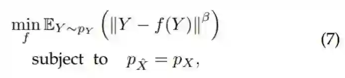 其中,可以发现问题(7)是上述最优传输问题的一种实现。 看似准则(7)违背直觉,因为它将重建目标推向了带噪输入,但是深入分析后会发现,该问题旨在寻找一个满足以下条件的重建映射 :
