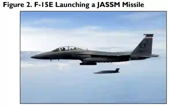 2021年2月在欧洲举行了第四次"on-ramp"。根据新闻稿,空军由于预算限制而减少了这次活动规模。这第四次将包括荷兰、波兰和英国在内的盟国联系起来,进行联合空中作战。据美国驻欧洲空军司令哈里根将军说,这第四次活动测试了美国和盟国用F-15E飞机发射AGM-158联合空对地对峙导弹(JASSM)执行远程打击任务的能力(见图2),同时利用美国和盟国的F-35飞机执行空军基地防御任务。