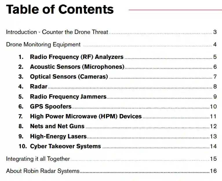 本电子书概述了目前可以购买的反无人机设备。也可以将其称为反无人机或反无人机系统(C-UAS)技术。