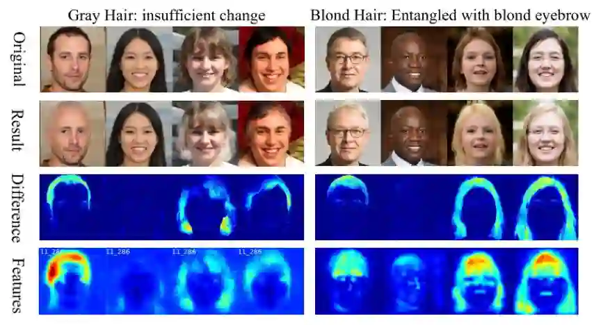 如图5所示,本文所提出的方法能够编辑各种语义区域的多种属性,同时无论是空间还是语义层面,解耦程度都很高。图6和图7则进一步通过可视化说明了本文所提方法的有效性。