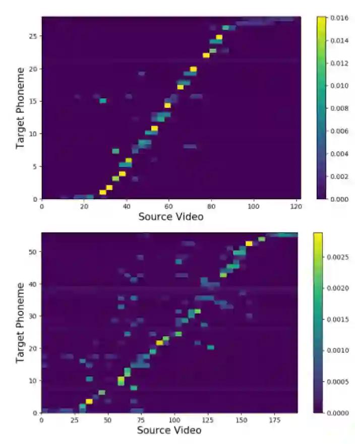 图3 视频帧与目标词序列的单调对齐的可视化结果