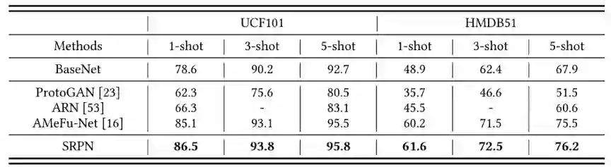 本文在三个常用的数据集MiniKinetics,UCF101和HMDB51做了相关实验。实验结果可以看出该方法获得了较好的表现,并验证了其有效性。