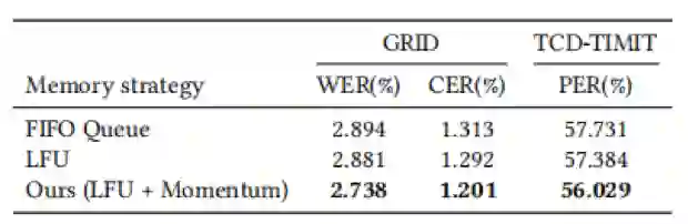 此外,我们探究了不同的训练策略、记忆块更新策略,以及记忆块尺寸的影响。