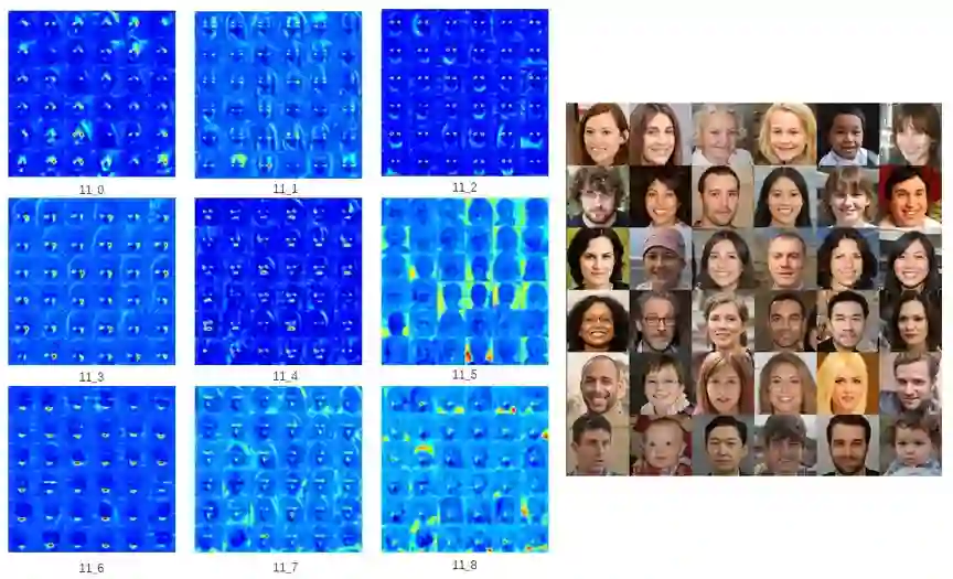 StyleGAN2中的中间特征图具有明显的局部激活特性。如图1所示,对应于不同生成图片的中间特征图在相同的人脸语义区域持续激活。基于此,我们设计了一种基于梯度反向传播的特征图高激活区域判定方法,能够简单有效地定量衡量特征图及其对应的调制参数的区域相关性。根据每个通道不同的区域激活特性,能将生成器中间特征和调制参数的不同通道划分为多组。