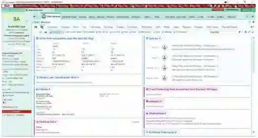 (a) Epic EHR系统的一个示例界面,显示一个假的病人。