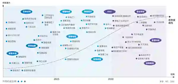 从场景应用维度看,智能化场景在行业的落地随着时间的推移,正呈现出更加深入、更加广泛的趋势。 人工智能持续为提升用户体验做出贡献,当前诸如智能客服、智能推荐、精准营销等场景深入落地到各行业;人工智能也在精准科学防疫,加强公共卫生安全体系建设中承担重要角色,在病毒演变预测、疫苗药物研发、辅助诊断等维度实现广泛应用;长期来看,企业通过在数字人等数字化营销内容创作领域布局,创造差异化的营销体验,升级品牌形象;另外,科学家们越来越多地利用人工智能技术和方法,从数据中建立模型,重点围绕新药创制、基因研究、新材料研发等领域加速对前沿科学问题的探究。