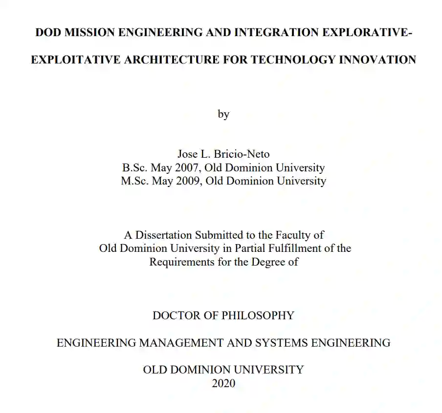任务工程探索-开发创新架构扩展了 Bennan 和 Tushman(2003 年)以及 O'Reilly 和 Tushman(1996 年)的探索-开发理论,从流程管理、创新行为以及私营企业在环境技术变革背景下的绩效等方面进行了阐述。基于系统理论框架的定性内容分析对创新和国防部数据集进行了分析,并产生了一组初始种子类别。对这些种子类别进行解释后,产生了架构观点和相关命题。由此产生的架构贡献是在军事任务和复杂情况下对任务工程和集成管理功能的命题定义,包括识别社会-技术错位的构造,作为理解和识别技术创新机会及相关伙伴关系的基础。