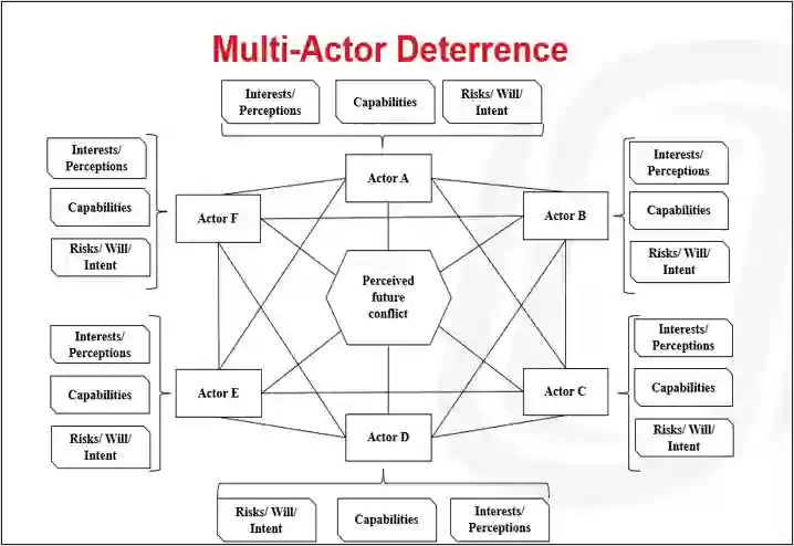多行为体威慑概念认识到,21 世纪复杂的威胁环境包括多个国家和非国家行为体,它们既有相互冲突的利益,也有共同利益,各自具有不同的优势和弱点。这些行为体在新的安全环境中运作,核扩散、网络和空间威胁以及地区和混合冲突同时存在,并影响着他们的决策过程。报告还承认,在几乎所有当代威胁环境中,往往有两个以上的行为体参与其中,而这些行为体不一定被称为大国。