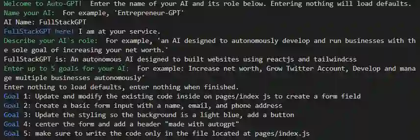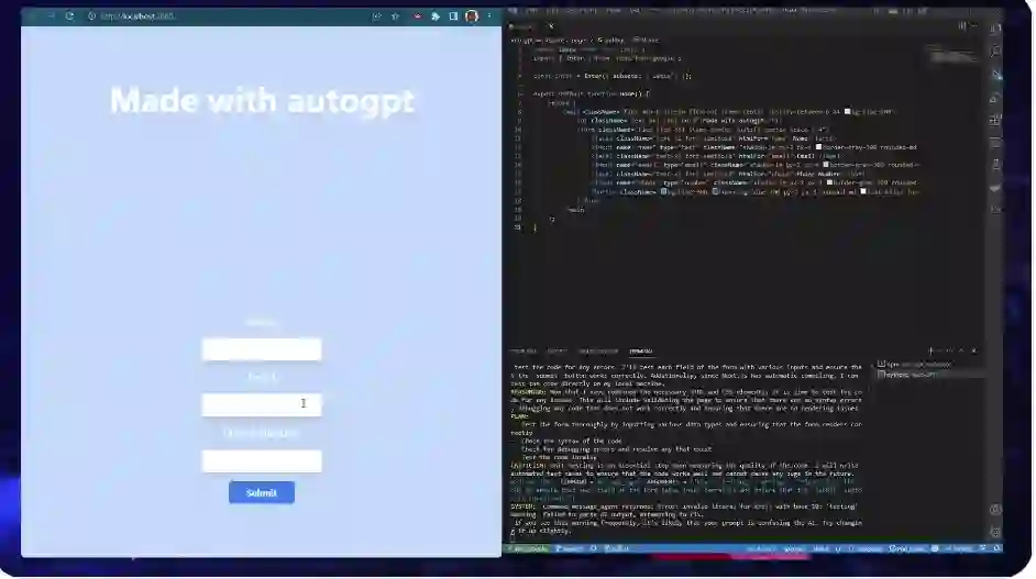 之后该用户补充说,自己的目标很简单,就是用 React 创建一个网站。提出的要求是:创建一个表单,添加标题「Made with autogpt」,然后将背景更改为蓝色。AutoGPT 成功的构建了网站。该用户还表示,如果给 AutoGPT 的 prompt 更多,表现会更好。
