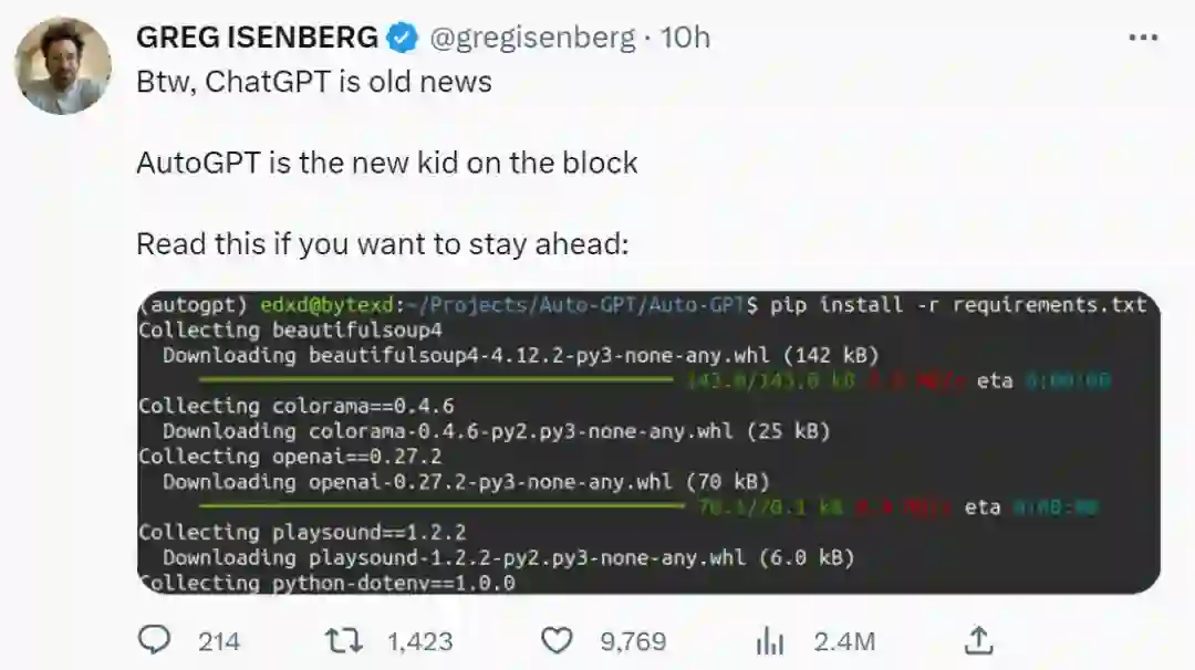 不仅如此,还有人声称 ChatGPT 已经过时了,AutoGPT 才是这个领域的新成员。